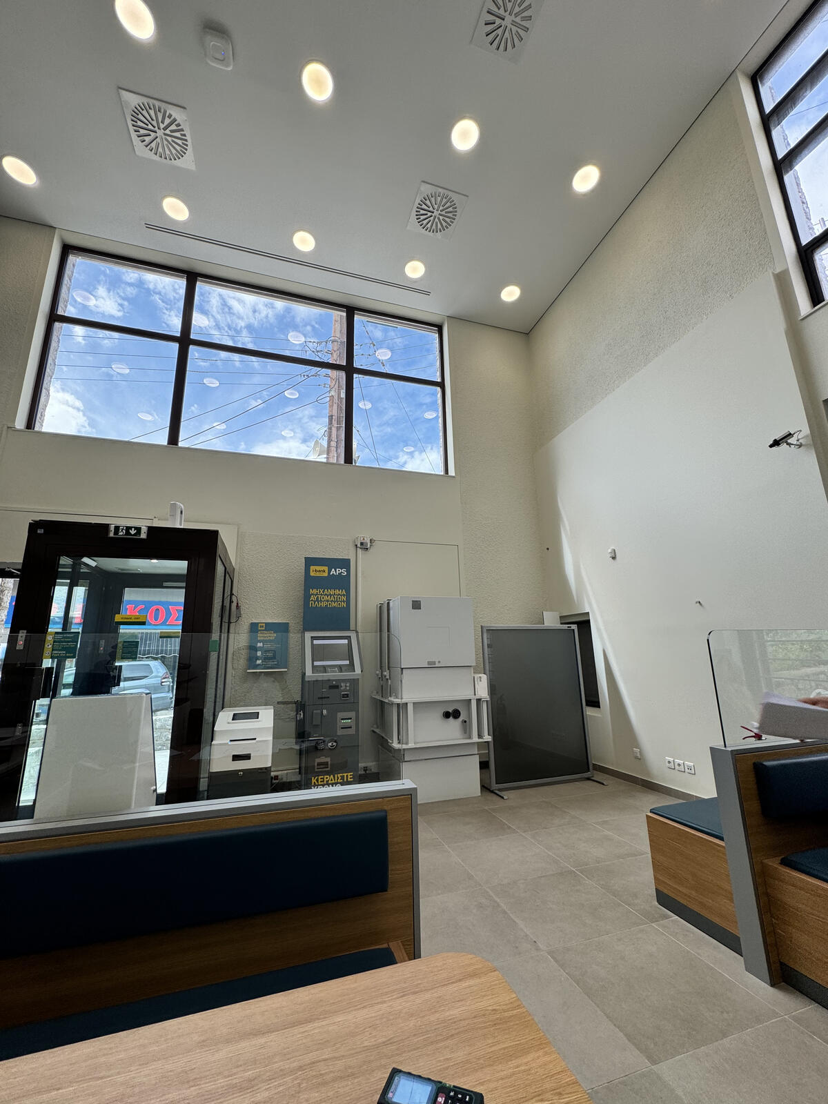 - Τον χρωματισμό όλου του καταστήματος με χρώματα της νέας εταιρικής ταυτότητας της τράπεζας.