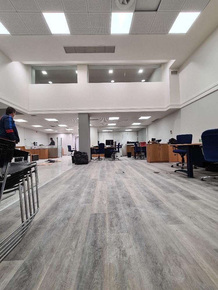 Οι εργασίες αφορούσαν τον χρωματισμό όλου του καταστήματος, την αντικατάσταση των δαπέδων με βυνιλικό δάπεδο, του δαπέδου της σκάλας, την αντικατάσταση όλων των φωτιστικών σωμάτων με νέα τύπου LED και την αντικατάσταση των πλακών ψευδοροφής με νέες.